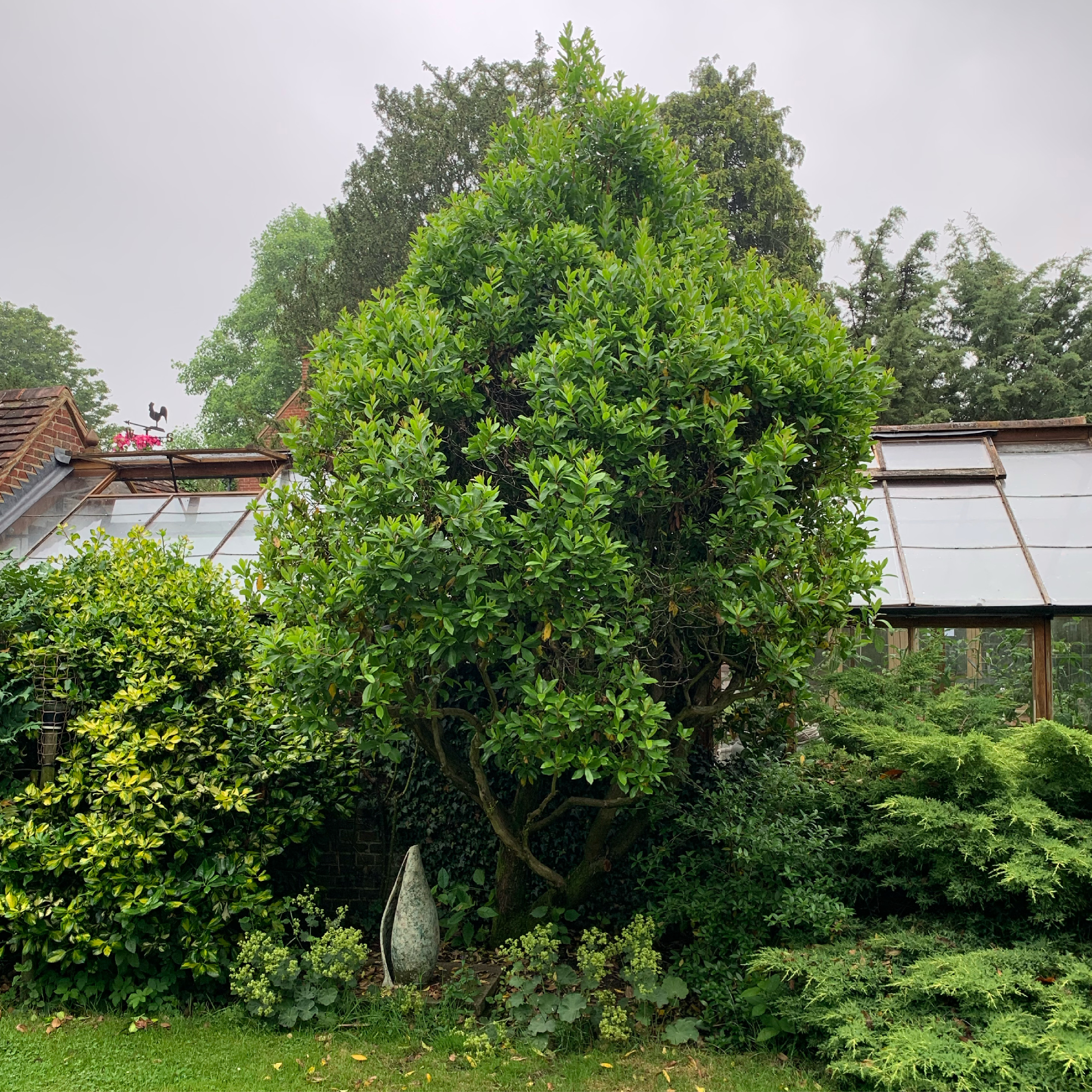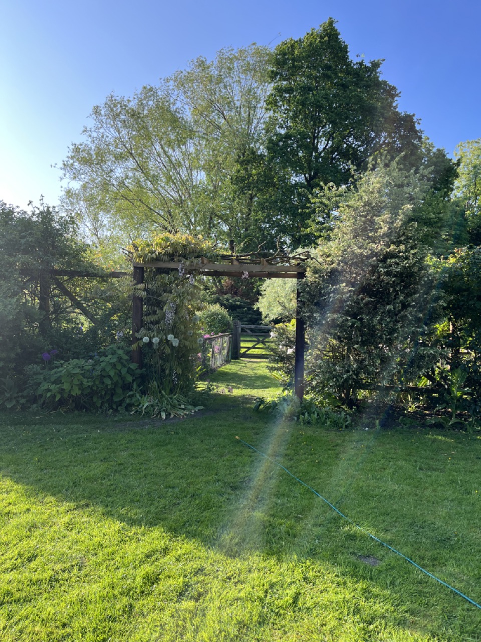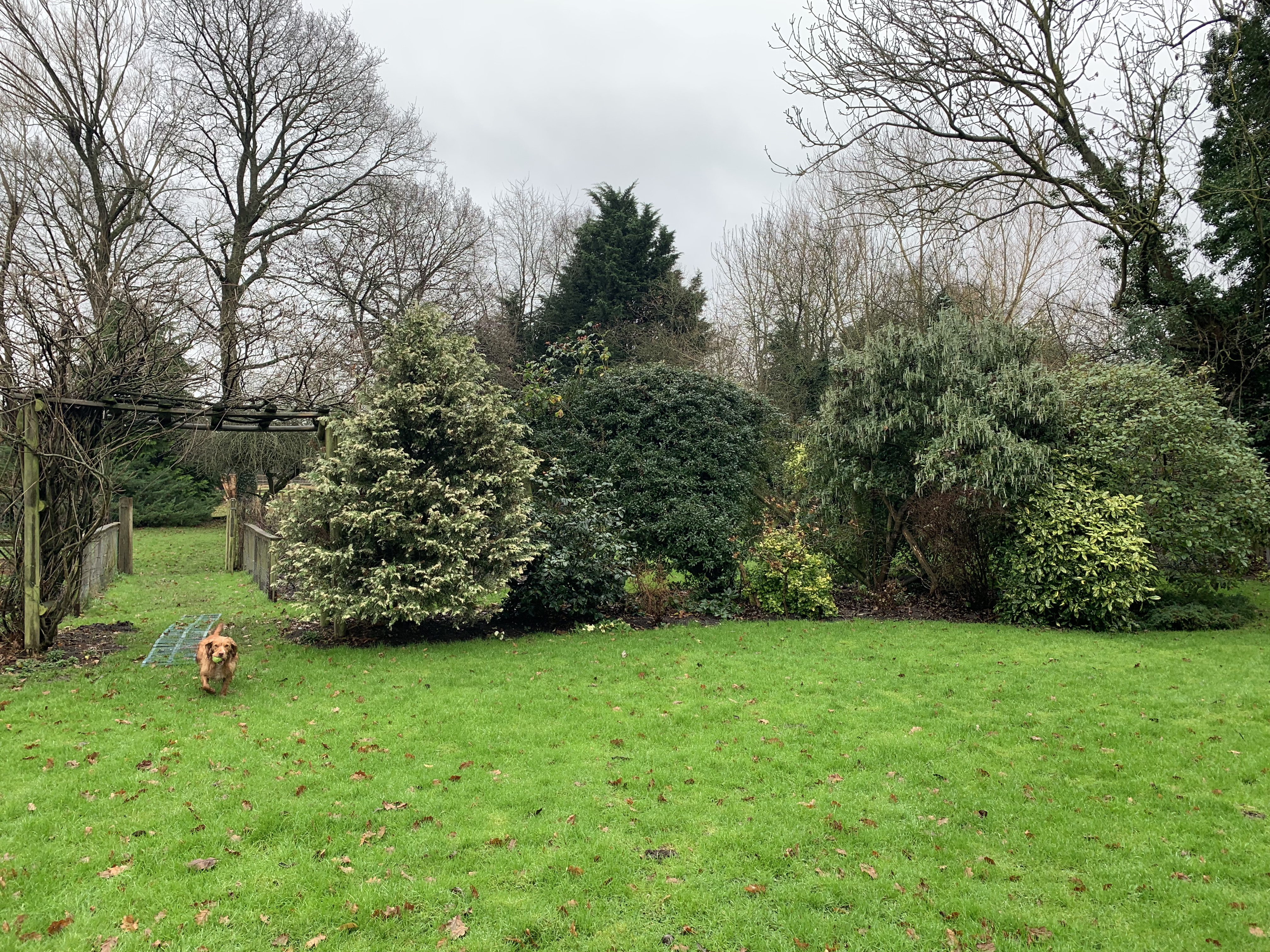 This is how many people see the garden, as they are walking along the pavement of Ockham Lane. The laurel hedge has been cut low so that you can see in and get an idea about what a lovely garden it would be to visit!
